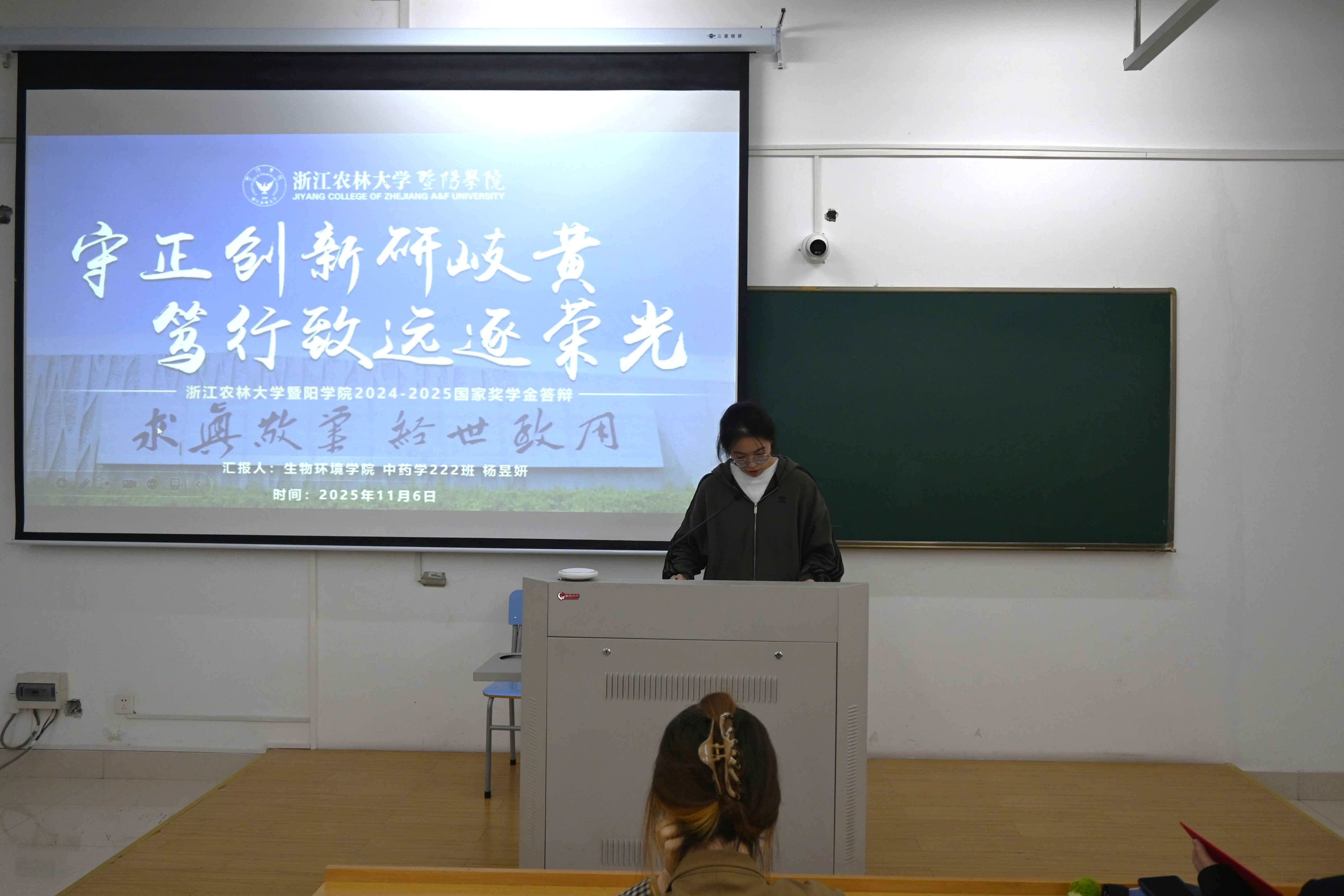 首先由陈慧分享了她在大学期间的成长经历,展示了她在学业、科研等方面获得的多项荣誉。她从思想、学术、实践三方面入手,用亲身经历告诉学弟学妹们,对待学习和生活都要秉持永不言弃的态度。随后,杨昱妍针对思想、学业、科研、服务四个角度,通过讲述自己在学习、科研等方面的经历,表明了守正创新的重要性,同时强调了笃行致远对于自身成长的关键性。最后,张露从四个方面将学科竞赛解构。她将比赛制胜的关键分为“内核”、“呈现”、“展示”三部分,向我们分享了她的制胜经验。同时激励暨阳学子加强对自身的锤炼,不断提高创新能力。