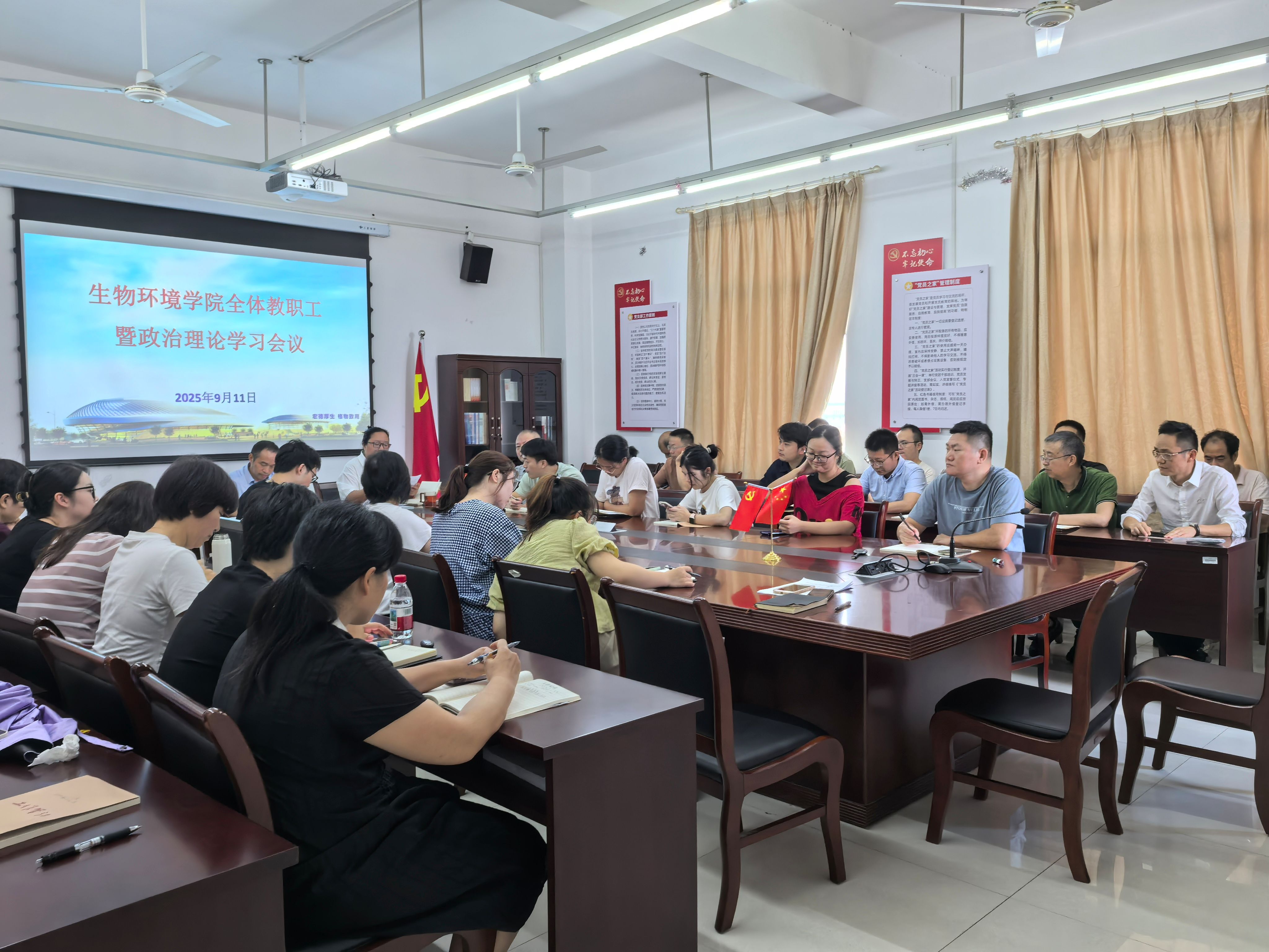 9月11日下午,生物环境学院在党员之家召开全体教职工暨政治理论学习会,院长严国兵出席会议,全体教职工参加会议,会议由党总支书记徐春霞主持。