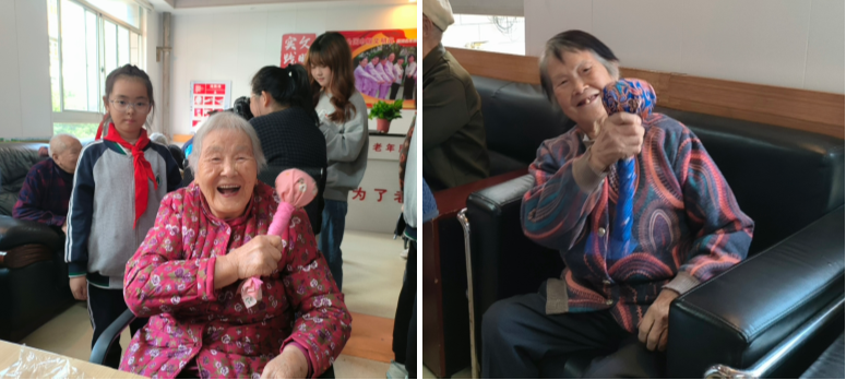 不一会儿,一个个承载着健康祝福的艾草锤便制作完成。老人们高兴地拿着艾草锤,在肩膀上、背上轻轻捶打着,纷纷称赞这个活动“既有心意,又有‘新意’,还很实用!