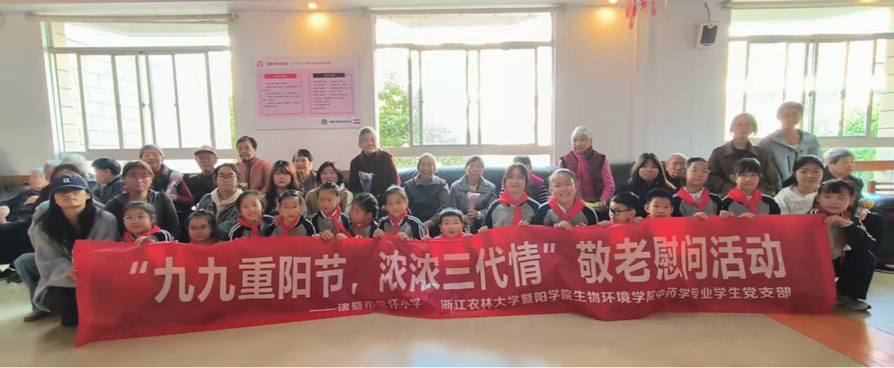 金秋送爽,丹桂飘香。10月24日,在中华民族的传统节日“重阳节”到来之际,生物环境学院中药学学生党支部的党员同志们携手诸暨市荣怀小学的小学生们,一同走进富润老年康乐中心,开展了一场以“九九重阳节,浓浓三代情”为主题的敬老慰问活动。