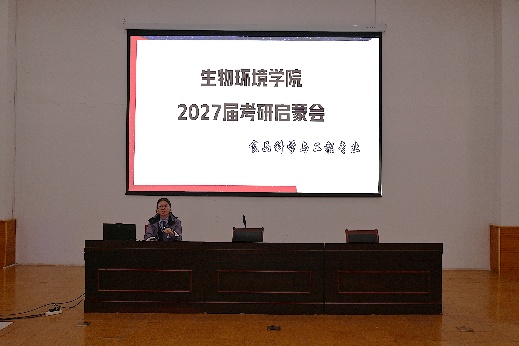 为坚定学子考研决心,帮助广大学子高效备考,明确考研目标与方向,11月10日至11月13日下午,生物环境学院于人文4110举办了四场考研动员会,分别面向食品科学与工程、环境工程、人文地理与城乡规划、中药学四大专业的学子开展针对性指导。生物环境学院党总支书记徐春霞,2027届毕业生辅导员,各专业负责人,2027届全体毕业生参加了本次动员会。