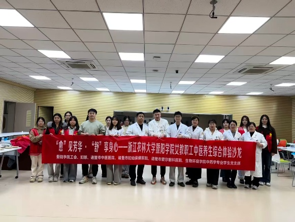 2025年11月27日下午,由学院工会、妇联主办,生物环境学院中药学专业学生党支部承办的“‘愈’见芳华·‘舒’享身心”中医养生综合体验沙龙在理工1号楼5楼顺利举行。本次活动特邀诸暨市中医医院、妇幼保健院、胡庆余堂膏方团队及爱尔眼科医院等多方专家与理疗团队联袂参与,为女教职工带来一场涵盖内调、理疗、焕活与养心的全方位健康关怀。