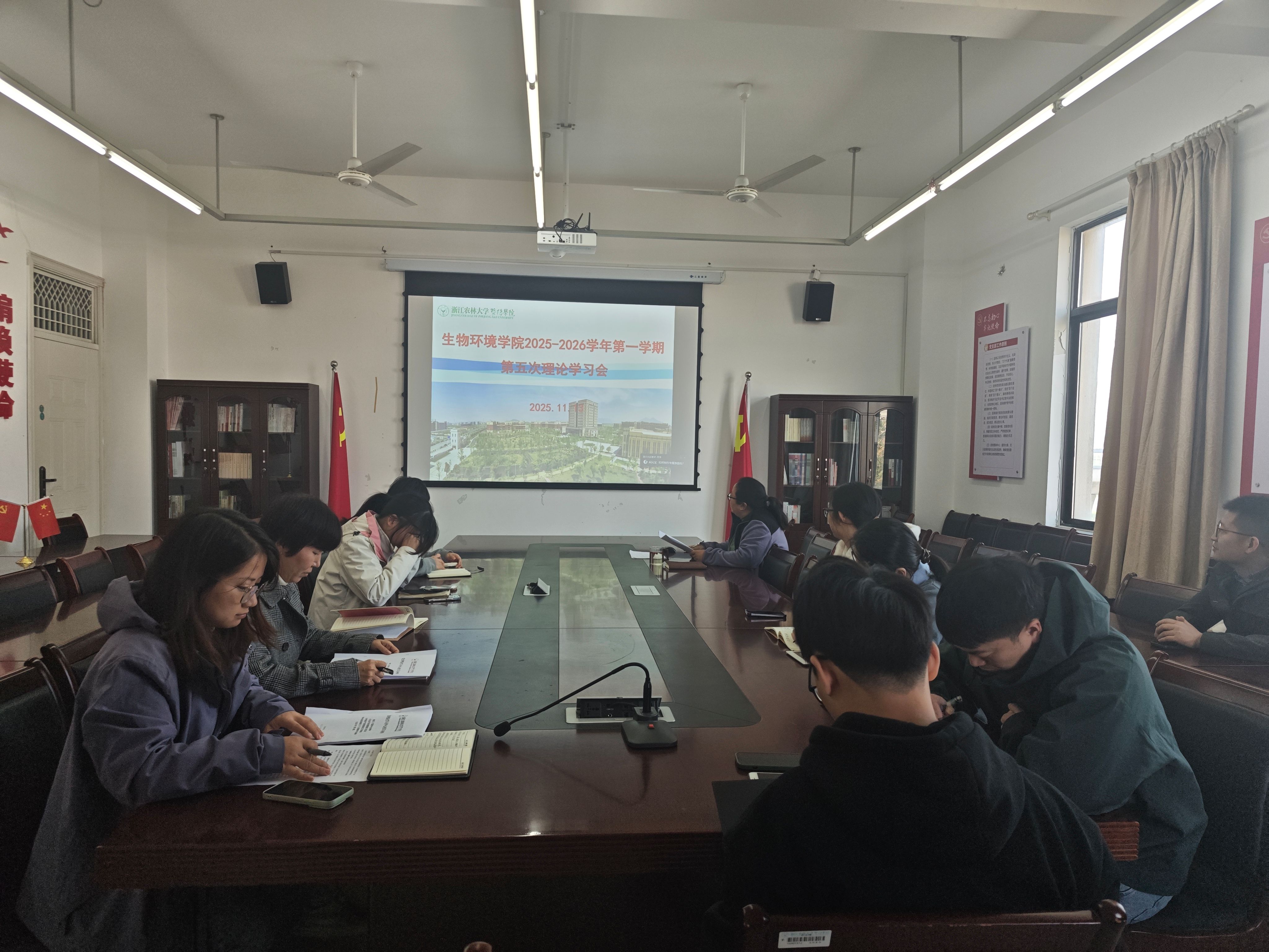 11月13日下午,生物环境学院召开理论学习会议。会议聚焦《习近平谈治国理政》第五卷、党的二十届四中全会精神以及《中国共产党思想政治工作条例》等核心学习内容,深入传达相关会议、文件精神。各支部书记、全体教工党员参加本次会议。会议由党总支书记徐春霞主持。